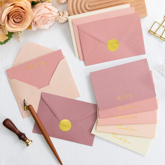 Crisky Shade of Dusty Rose Thank You Cards (50 Pack) with Craft Envelopes & Stickers Greeting Cards Bulk for Birthday, Baby Shower,Bridal Shower, Wedding, Graduation.