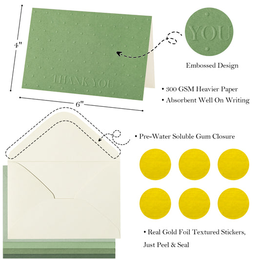 Crisky Shade of Sage Green Embossed Dots Thank You Cards (50 Pack) with Envelopes & Stickers Greeting Notes Bulk for Birthday, Baby Shower,Bridal Shower, Wedding, Graduation