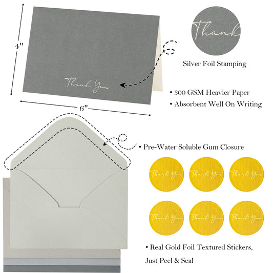 Crisky Shade of Earl Gray Silver Foil Thank You Cards (50 Pack) with Envelopes & Stickers Greeting Cards Bulk for Birthday, Baby Shower,Bridal Shower, Wedding, Graduation