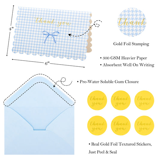 Crisky Thank You Cards with Envelopes,50 Pack Blue Thank You Cards Bulk Bow Style for Baby Shower, Birthday, Wedding Decoration Party Favors