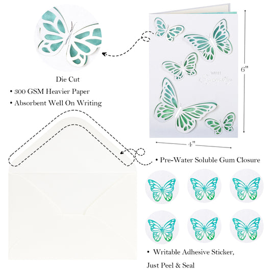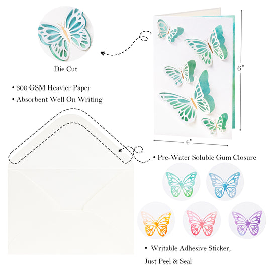 Crisky 25PCS 5 Ast Laser Die-cut Watercolor Butterflies Thank You Cards with Envelopes & Stickers Greeting Cards Bulk for Birthday, Baby Shower,Bridal Shower, Wedding, Graduation