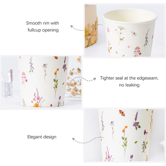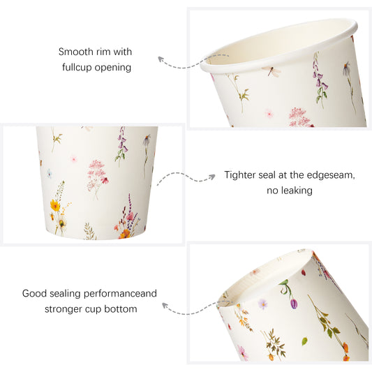 Crisky 300 Pack 5oz Paper Disposable Bathroom Cups Small Mouthwash, Elegant Floral Design, Hot/Cold Beverage Coffee, Dessert for Birthday Parties, Home-use, Picnics, Ceremonies