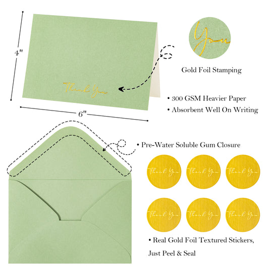 Crisky 50 Pack Thank You Greeting Cards With Envelope Sage Green Thank You Cards for Wedding/Bridal Shower/Baby Shower/Business/Graduation
