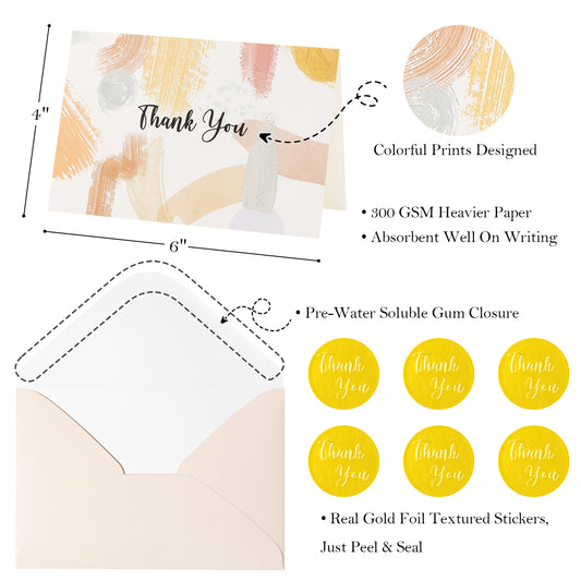 Crisky 50 Pack Morandi Thank You Cards with Envelopes and Stickers Set 4 assorted Greeting Note Cards for Wedding, Baby Shower,Bridal Shower, Graduation, Business