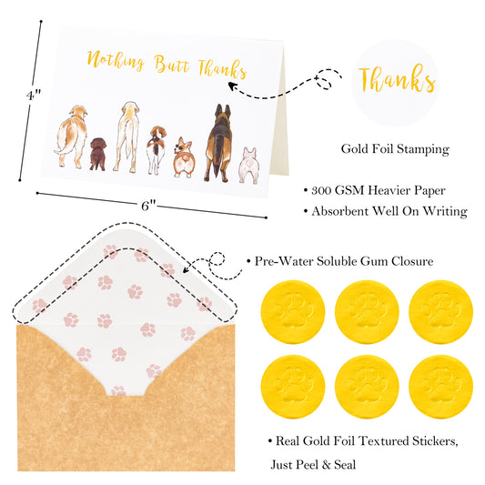 Crisky 50 Count Dog Thank You Cards Nothing Butt Thanks Gold Foil Greeting Cards with Envelopes & Stickers For Friends, Women Men, Teachers, Colleagues