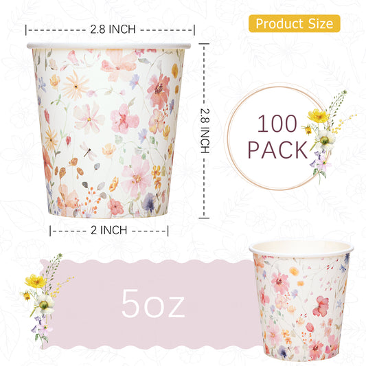 Crisky 5oz Paper Cups Dixie Cup[100 Pack], Disposable Bathroom Cups, Elegant Design Floral Small Mouthwash Cup, Hot/Cold Beverage Coffee, Dessert for Birthday Parties, Home-use, Picnics, Ceremonies