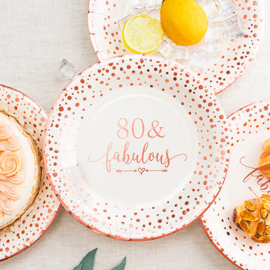 Crisky 80 Fabulous Disposable Plates for Women 80th Birthday Decorations Rose Gold Dessert, Buffet, Cake, Lunch, Dinner Disposable Plates 80th Birthday Party Table Supples, 50 Count, 9 inches