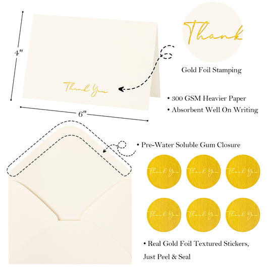 Crisky 50 Pack Thank You Greeting Cards With Envelope Ivory Thank You Cards for Wedding/Bridal Shower/Baby Shower/Business/Graduation