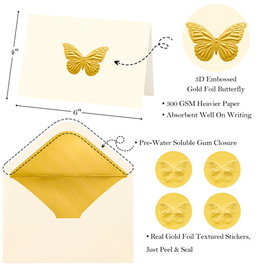 Crisky Embossed Gold Blank Greeting Cards with Envelopes & Stickers 50 Pack Butterfly Note Cards Bulk for Birthday, Baby Shower,Bridal Shower, Wedding, Graduation Blank Inside