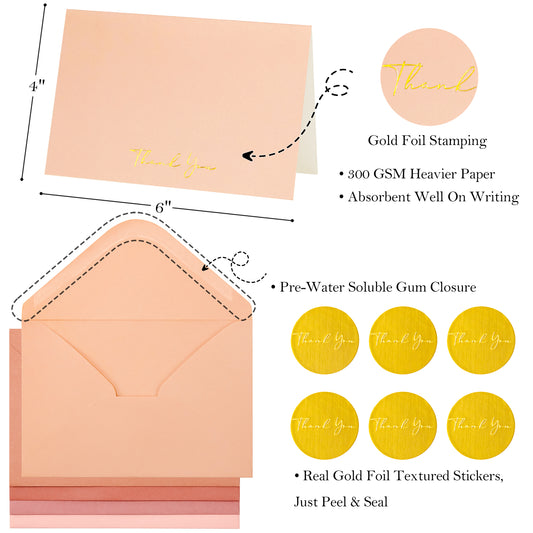 Crisky 50 Pack Thank You Greeting Cards With Envelope Peach Thank You Cards for Wedding/Bridal Shower/Baby Shower/Business/Graduation