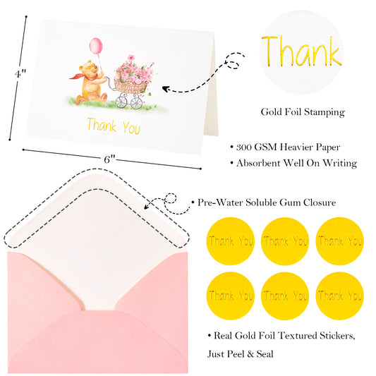 Crisky Baby Shower Girl Thank You Cards with Envelopes 25 Pack Pink Baby Shower Greeting Notes Bulk (Winnie the Pooh with Baby Carriage)