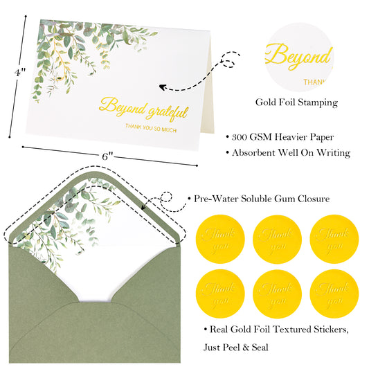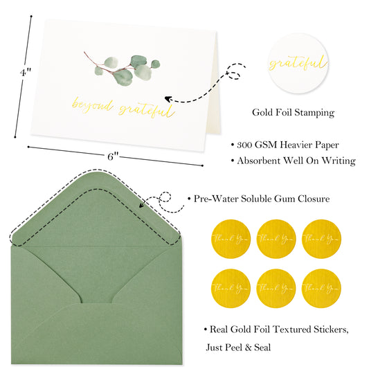Crisky Gold Foil Beyond Grateful Thank You Cards 4 Assortment,Eucalyptus Leaves (25 Cards with Envelopes for Birthday,Baby Shower,Bridal Shower,Wedding,All Occasion)