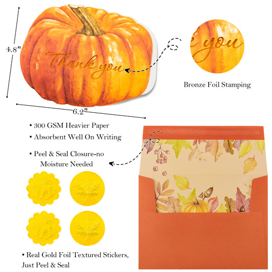 Crisky 25 Autumn Pumpkin Maple Leaves Thank You Cards with Envelopes Fall Thanksgiving Blank Greeting Cards for Thanksgiving Autumn Holiday Baby Shower Party Supplies