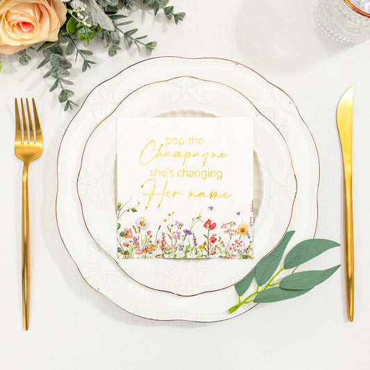 Crisky Floral Bridal Shower Napkins - Gold Foil Miss to Mrs Paper Disposable Napkins for Engagement/Bridal Shower/Bridal/Bachelorette Party Decoration, 3-Ply, 50 Counts