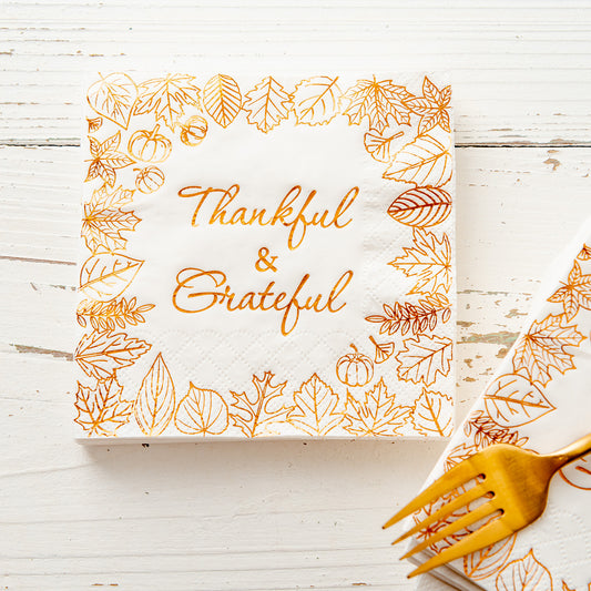 Crisky Thanksgiving Disposable Napkins Paper for Autumn Thanksgiving Dinner Party Decorations, Thankful and Grateful in Orange Foil, 50 Pcs, 3-Ply