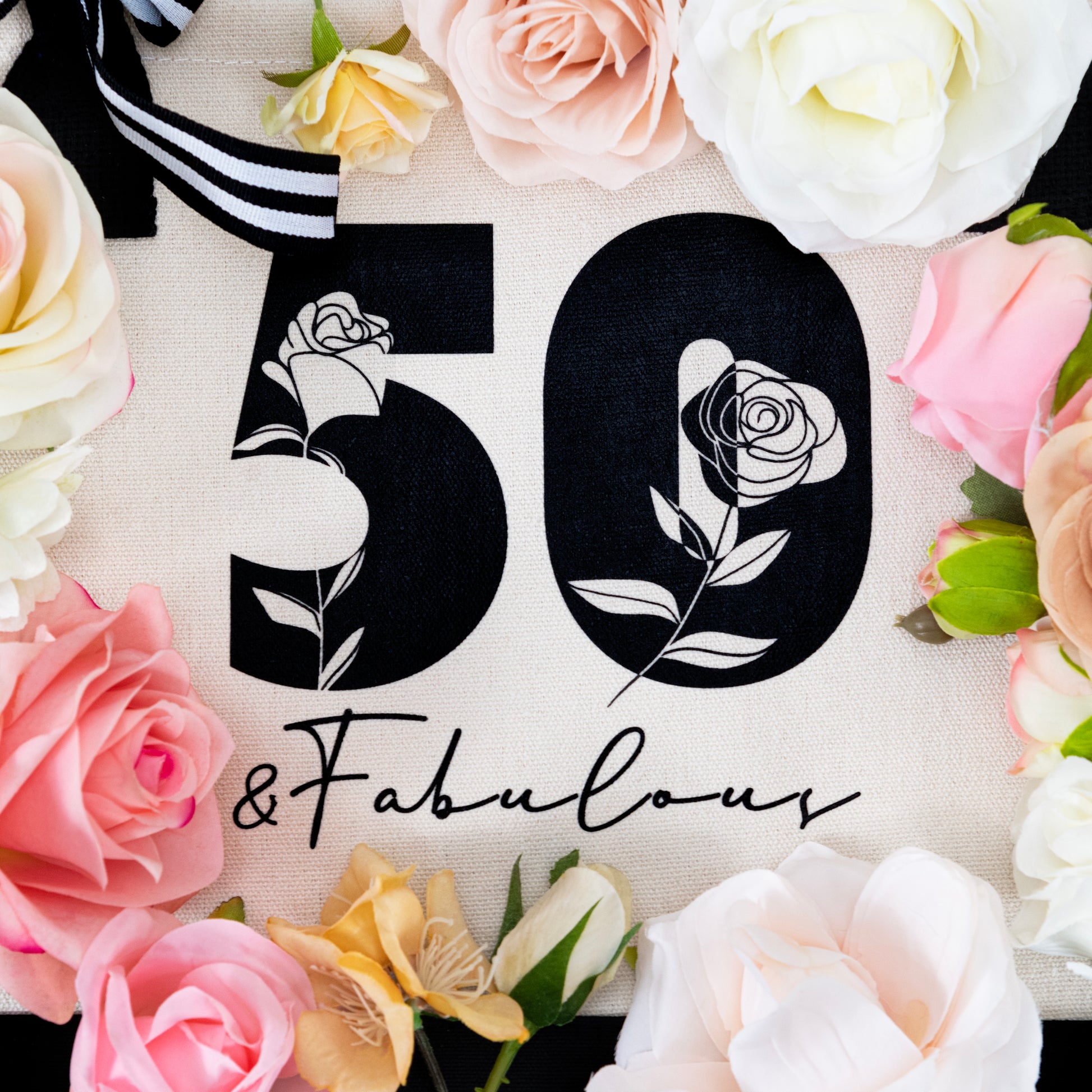 Crisky 50th Birthday Gifts for Women Canvas Tote Bag 50 & Fabulous Beach Bag for Wife/Sister/Mom/Aunt/Friends 50th Birthday Gifts,17" x 12" x 7"